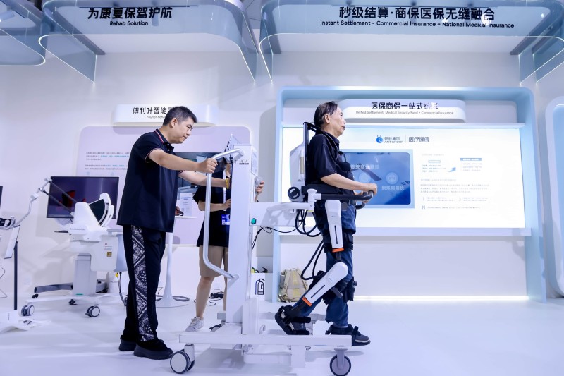 医疗健康领域的人机互动则充满了人文关怀。傅利叶智能康复港让参观者感受到科技对康复的助力,使用ArmMotus™ EMU三维上肢康复机器人,能模拟治疗师的手法,在三维空间内实现更轻便柔顺的上肢康复训练。