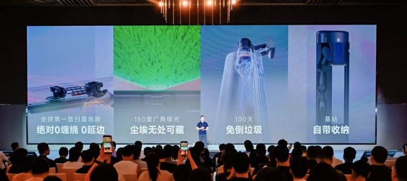 在技术层面,“扫地僧” 其实不乏亮点,自研950W无刷电机,体积减小15%,重量减轻20%,配合3D涡轮风叶,每分钟转速达15万转。但这些参数在发布会上只是轻轻带过,更多的篇幅留给了那些让生活“好一点点”的细节。